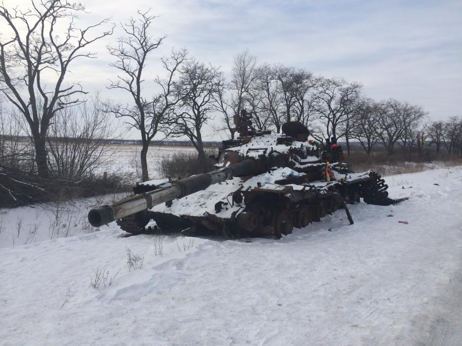 …Красивое когда-то здание Дома культуры в Новосветловке сейчас полуразрушенное, обугленное. А на обочинах до сих пор стоят сожженные с оторванными башнями танки, на них венки.