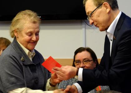 В завершение встречи Поздняков В.Г. вручил Памятные медали ЦК КПРФ «75 лет битвы под