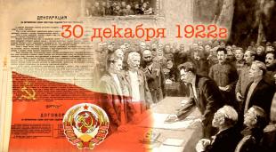 Первый съезд Советов СССР 30 декабря 1922 года единодушно принял Декларацию и Союзный Договор об образовании СССР, с проектами которых выступил Сталин и в основу которых была положена ленинская идея равноправия и братского сотрудничества народов, идея пролетарского интернационализма. Решения Первого Всесоюзного съезда Советов имели громадное значение для строительства социализма в нашей стране и для дальнейшего развития всего международного революционного движения.