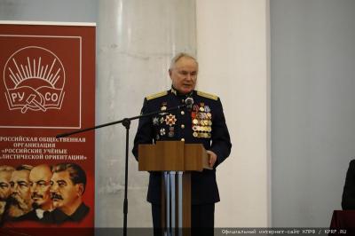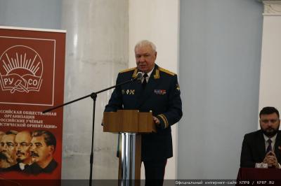 21 декабря 2024 года в Центральном доме Российской Армии КПРФ и РУСО провели научно-практическую конференцию "Верховный главнокомандующий Великой Победы", приуроченную к 145-летию со Дня рождения Иосифа Виссарионовича Сталина. В ней участвовали депутаты Государственной Думы, руководители и видные представители КПРФ, организации "Российские учёные социалистической ориентации". В их числе - заместитель председателя ЦК КПРФ, руководитель Общероссийского штаба протестных действий, почетный председатель ЦС РУСО В.И. Кашин, секретари ЦК КПРФ К.К. Тайсаев, первый секретарь МГК КПРФ В.А. Царихин и председатель ЦК ЛКСМ РФ В.П. Исаков, первый секретарь Московского областного комитета КПРФ Н.И. Васильев, председатель Центрального совета РУСО И.Н. Макаров, председатель Всероссийского движения в поддержку армии, оборонной промышленности и военной науки генерал-лейтенант В.И. Соболев. На научно-практической конференции также присутствовали активисты лево патриотических организаций, курсанты военных академий.