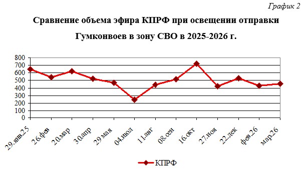 16 марта 2026 года на пяти центральных федеральных телеканалах («Первый», «Россия», НТВ, ТВЦ и Рен) был проведен мониторинг освещения отправки 151-го Гумконвоя КПРФ.