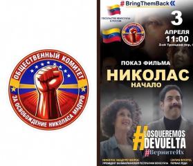 3 апреля в здании посольства Боливарианской республики Венесуэла состоялась презентация художественно-документального фильма, подготовленного венесуэльскими кинематографистами, «Николас. Начало». Просмотр первой части фильма был приурочен дате пиратского ареста и похищения законно избранного Президента Венесуэлы Николаса Мадуро Морос и его супруги, первой леди Силии Флорес.