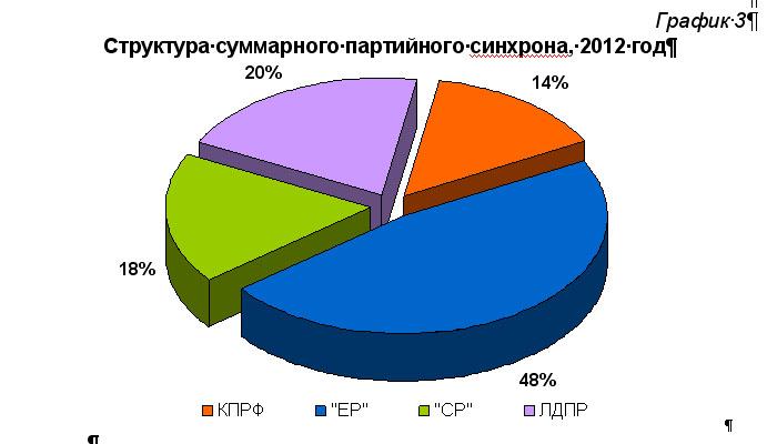 Единороссы получили наибольшую долю синхрона на ТВЦ, «Первом» и НТВ (62, 55 и 54%). Предпочтение справороссам отдали Рен-ТВ и НТВ (30 и 23%). Либерал-демократы заняли максимум эфира телеканалов «Россия» и Рен-ТВ (27 и 20%).