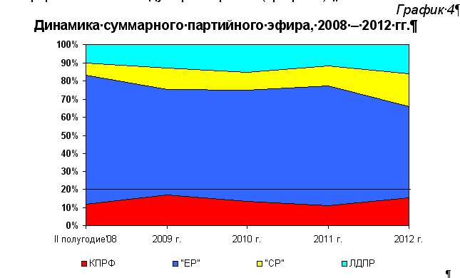 В течение июля 2008 г. – декабря 2012 г. структура партийного телеэфира менялась следующим образом (График 4):