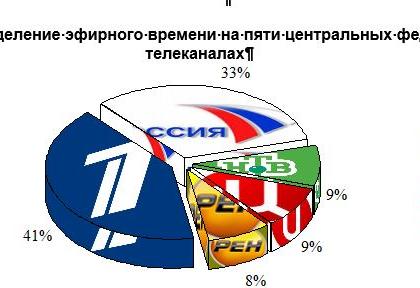 Остальное время (46 минут 13 секунд) распределилось на пяти центральных федеральных каналах (График 1).