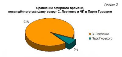 Сравнение эфирного времени, посвящённого скандалу вокруг С. Левченко и ЧП в Парке Горького