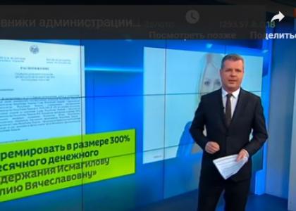 НТВ так же сообщил о скандале с выплатой премий. При этом основной акцент телеканал сделал на вознаграждении вице-губернатора Ю. Исмагиловой. На канале вышло два сюжета 17 января, они заняли 5 минут 52 секунды эфирного времени или 9%.