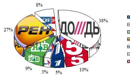 Пять сообщений было показано на телеканале Рен-ТВ, четыре на телеканале «Дождь», по два на «Пятом» (Санкт-Петербург), НТВ и «России», по одному на «Первом» и «России 24».