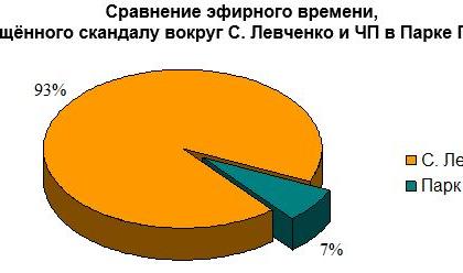 Сравнение эфирного времени, посвящённого скандалу вокруг С. Левченко и ЧП в Парке Горького