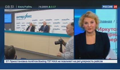 На «России 24» в эфир вышло четыре сюжета: два были показаны 12 марта и два утром 13 марта. Они заняли 15 минут 35 секунд или 63% всего выделенного данной теме эфирного времени. Из них 2 минуты 16 секунд пришлось на выступления иркутского губернатора.