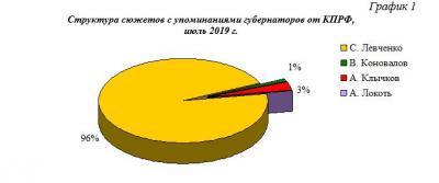 Была проанализирована упоминаемость четырёх губернаторов от КПРФ: А. Клычков (губернатор Орловской области), А. Локоть (мэр Новосибирска), В. Коновалов (губернатор Хакасии) и С. Левченко (губернатор Иркутской области) (Табл.1)