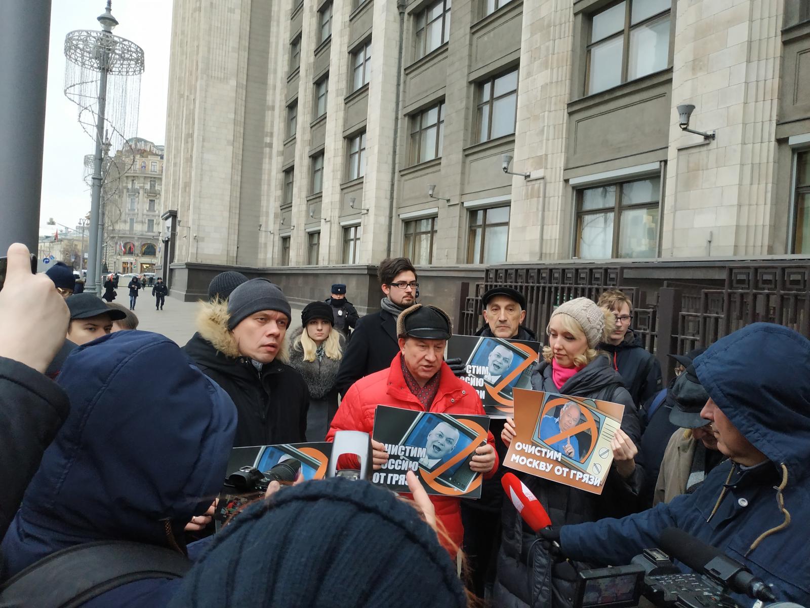 В центре Москвы прошла акция «Очистим Россию от грязи» против лживых СМИ, распространяющих недостоверные сведения о депутатах КПРФ, о губернаторе Иркутской области Сергее Левченко и директоре «Совхоза им. Ленина» Павле Грудинине.