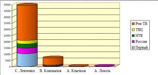 | Телеканал | С. Левченко | В. Коновалов | А. Клычков | А. Локоть | Всего |