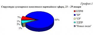 Что касается синхрона (прямой речи) партийцев, то его структура аналогична: единороссам было предоставлено 82% новостного синхрона, либерал-демократам – 6%, справороссам – 1%, «Новым людям» - 4%.