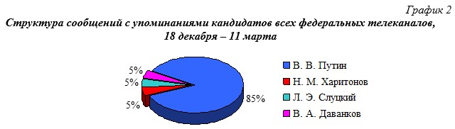 В январе-феврале кандидаты представили свои предвыборные программы: Н. Харитонов 18 января, В. Даванков 15 февраля, Л. Слуцкий 21 февраля, В. Путин 29 февраля (табл. 4).