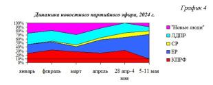 В течение 2024 г. структура новостного партийного телеэфира менялась следующим образом (Гр.4):
