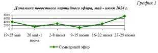 Динамика новостного партийного эфира, май - июня 2024 г.