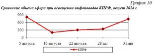 Сравнение объема эфира при освещении инфоповодов КПРФ, август 2024 г.
