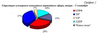 Структура суммарного новостного партийного эфира, январь – 5 сентября