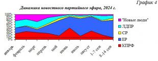 В течение 2024 г. структура новостного партийного телеэфира менялась следующим образом (Гр.4):