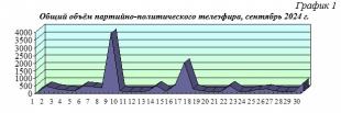Основной рост политической активности пришёлся на 9, 17, 30 и 22 сентября. 9 сентября подводились итоги Единого дня голосования, 17 сентября Госдума открыла осеннюю сессию, 30 сентября правительство внесло в Госдуму проект федерального бюджета, 22 сентября освещался Всероссийский конкурс «Земля талантов».