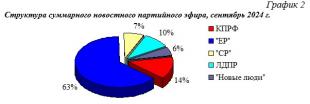 Структура суммарного новостного партийного эфира, сентябрь 2024 г.