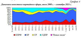 В течение июля 2008 г. – сентября 2024 г. структура новостного партийного телеэфира менялась следующим образом (Гр.4):