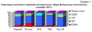 В сентябре в новостных выпусках на пяти федеральных телеканалах парламентским партиям было предоставлено 2 часа 44 минуты 57 секунд эфира, что на треть больше, чем было в августе (Табл.1).