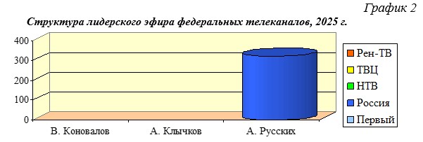 В январе 2025 года на федеральных каналах упоминались А. Русских (трижды на центральных каналах) и А. Клычков (один раз на РБК). В.Коновалов не упоминался.