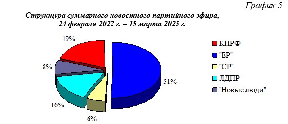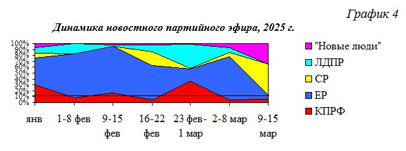 В течение 2025 г. структура новостного партийного телеэфира менялась следующим образом (Гр.4):