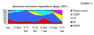 В течение 2025 г. структура новостного партийного телеэфира менялась следующим образом (Гр.4):