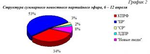Коммунистам было предоставлено 6 минут 12 секунд или 31% эфира, что в два раза меньше, чем «единороссам» (Гр.3).
