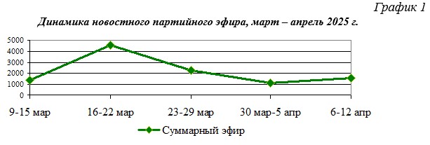 Динамика новостного партийного эфира, март – апрель 2025 г.