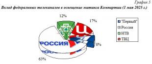 Вклад федеральных телеканалов в освещение митинга Компартии (1 мая 2025 г.)