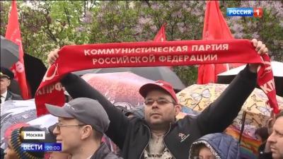 На «России» вышло четыре однотипных сюжета о праздновании Первомая в стране. В первом освещался только митинг «Справедливой России», в остальных митинги КПРФ, «СР» и ЛДПР, а также мероприятия «Единой России» (субботник в Санкт-Петербурге, поздравление ветеранов в Туле, велозаезд в Геническе). Время для выступления было предоставлено всем партиям, кроме «партии власти».
