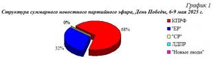 Структура суммарного новостного партийного эфира, День Победы, 6-9 мая 2025 г.
