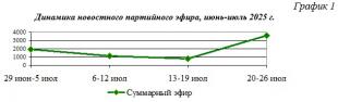 Динамика новостного партийного эфира, июнь-июль 2025 г.