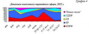 В течение 2025 г. структура новостного партийного телеэфира менялась следующим образом (Гр.4):