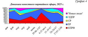 В течение 2025 г. структура новостного партийного телеэфира менялась следующим образом (Гр.4):