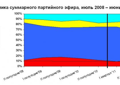 В первом полугодии 2011 года «Единая Россия» получила 34 часа 16 минут 44 секунд, что составило 60%. На долю ЛДПР пришлось 14% эфирного времени, «Справедливую Россию» показывали 15% от суммарной продолжительности политических телепередач.