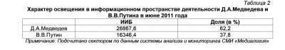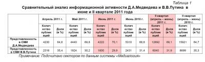 Сравнительный анализ информационной активности Д.А.Медведева и В.В.Путина в июне и II квартале 2011 года
