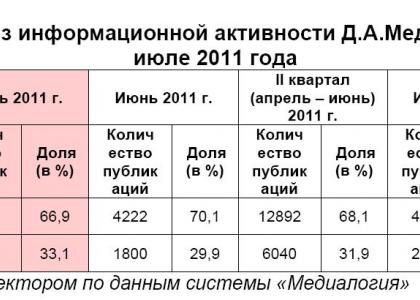 Сравнительный анализ информационной активности Д.А.Медведева и В.В.Путина в июле 2011 года