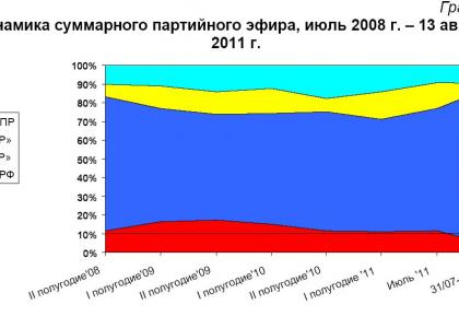 Динамика суммарного партийного эфира, июль 2008 г. – 13 августа 2011 г.