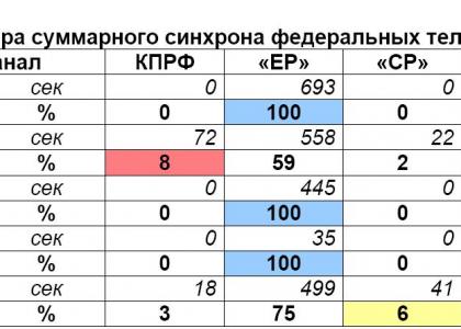 Суммарный синхрон федеральные телеканалы распределяли следующим образом (Таблица 3):