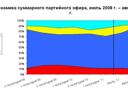 Динамика суммарного партийного эфира, июль 2008 г. – август 2011 г.