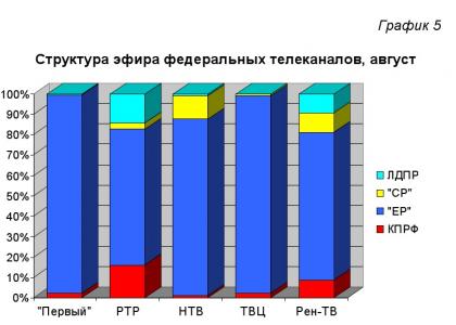 В течение июля 2008 г. – августа 2011 г. структура партийного телеэфира менялась следующим образом (График 4):