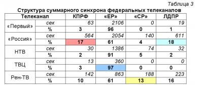 Суммарный синхрон федеральные телеканалы распределяли следующим образом (Таблица 3):