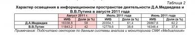 Сравнительный анализ информационной активности Д.А.Медведева и В.В.Путина в августе 2011 года