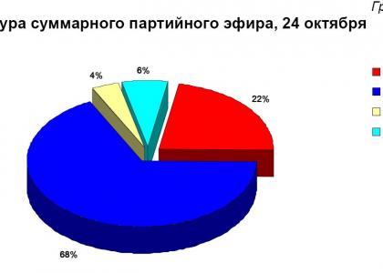24 октября на пяти федеральных телеканалах четырём парламентским партиям было посвящено 33 минуты 46 секунд новостного партийного эфира (Таблица 1).