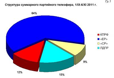 Структура суммарного партийного телеэфира, 1/IX-6/XI 2011 г.